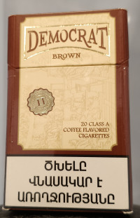 Democrat Brown (coffee flavored) - это заменитель великой и ужасной "чапы"? - конечно нет, но учитывая стоимость этих армянских кофейных "аромок" и достаточно гармонично подобранный ароматизатор в сочетании с подслащенным фильтром они довольно хороши, да и стоимость не "кусается", в отличии от того же чапмана. Можно смело сказать, что эти сигареты прочно заняли свою нишу и продажи "кофейного" демократа, а равно как и "вишневого" идут очень активно. Что до версии в формате- КС: тут производитель- Lex Tobacco Company, как это и водится у большинства армянских сигарет вновь немного завышает ТТХ , смело указывая показатели смолы и никотина в 9/0.7 мг, при этом , конечно, таких показателей тут нет, но в остальном, если конечно не считать за недостаток излишне рыхлый фильтр , других недочётов у этих "аромок" по сути и нет, так как и качество пачки и самих сигарет -всё на вполне достойном уровне. Да, табака сквозь кофейную аромку почувствовать тут не удастся, но ,вполне возможно, что это так и задумано производителем. Так называемая "рум нота" у Democrat Brown гораздо нежнее "ванильного собрата"- она приятна и растворяется в помещении достаточно быстро, не "зависая" и не напоминая о себе слишком на долго. В своём ценовом сегменте - эти сигареты можно назвать очень достойным вариантом, но как и в других случаях, формат КС у "аромок" Democrat получился не очень удачным и я бы предложил попробовать их же, но в формате компакт, на мой взгляд, именно в формате компакт Democrat у LEX Tobacco Company получился интереснее.Отзывы с оценкой